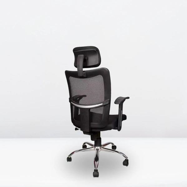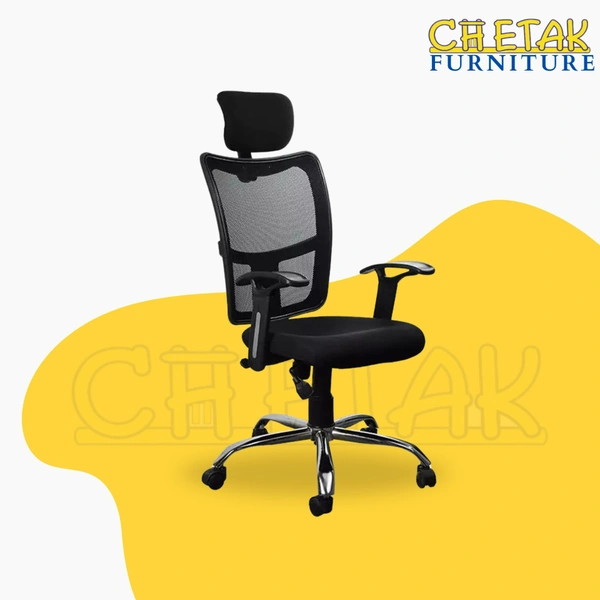Upgrade your workspace with the Chetak High-Back Mesh Chair – a chair that works as hard as you do. Designed for long hours, it features a breathable mesh back, a soft cushioned seat, and a supportive headrest so you stay cool and comfortable all day.