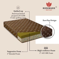 • Material Used - Jacquard Quilted cloth + 2" High quality pu foam + 4" High quality Bonded foam. Combining this gives superior support with extra comfort and resilience, ensuring the mattress maintains its shape and performance over time